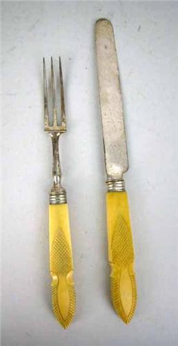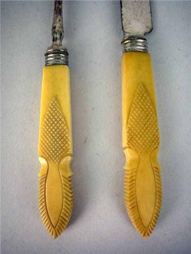 A SET OF TWELVE BONE STYLE CARVED KNIVES AND FORKS