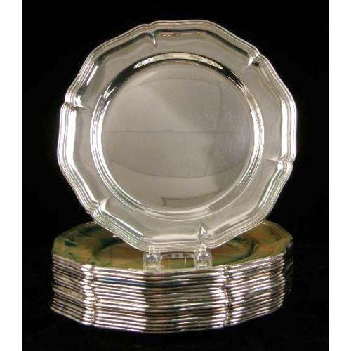 A SET OF TWELVE COHR, DENMARK ATLA EPNS SHAPED CIRCULAR SERVICE PLATES<BR><BR>Each 11"diameter