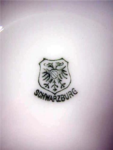 The underside of saucers marked Schwarzburg. Some minor chips and wear.