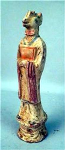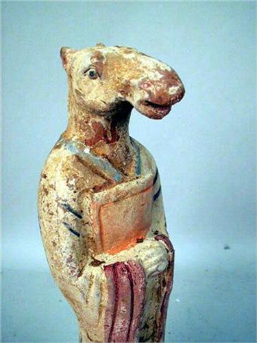 Chinese, possibly Tang Dynasty. Some chips and wear to surface decoration. Approximately 11 1/4"h.