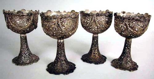 A SET OF TWELVE STERLING SILVER RETICULATED WINE GLASSES; Each 4 1/2"h, 42 t.o.