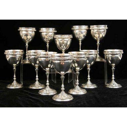 A SET OF TWELVE VIGUERAS 950 MEXICAN STERLING SILVER GOBLET<BR><BR>With floral motif banding, each 7-1/2"high, toal weight apx. 134 T.O.