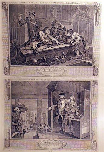 From the Idle Prentile series. Comprising five uncut double plate sheets and two single sheets. Some foxing, losses, and discoloration