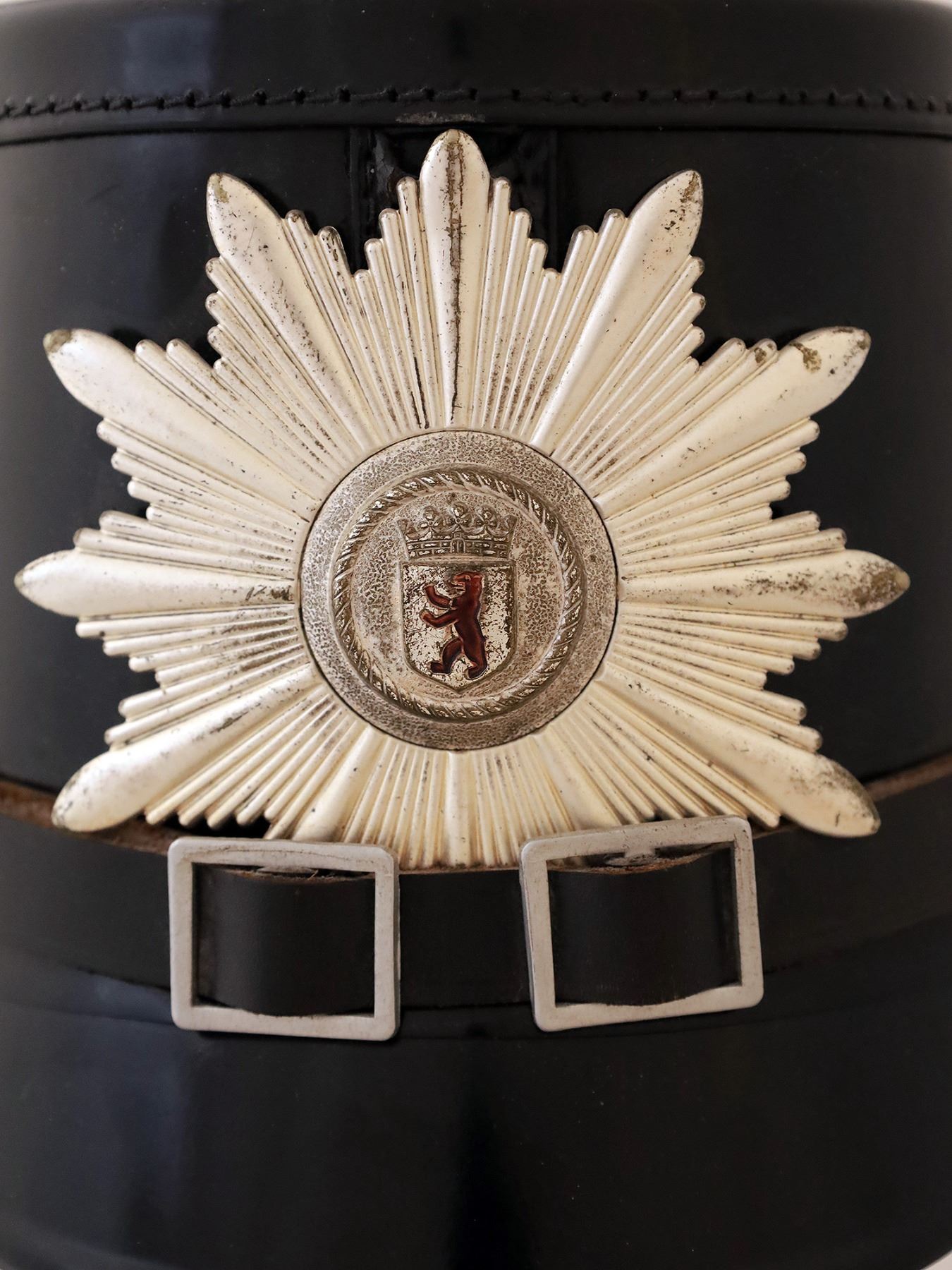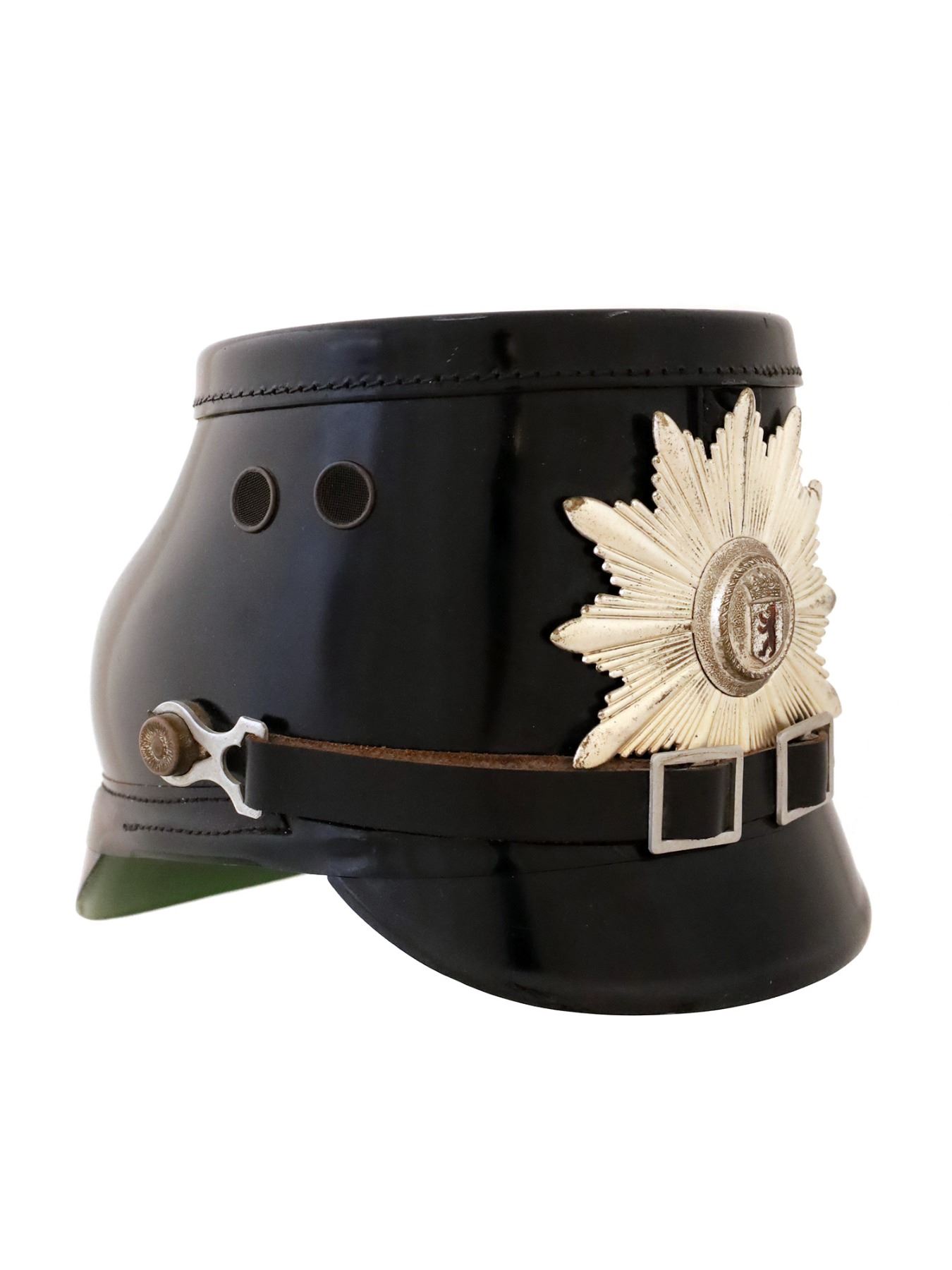 Post-War German Berlin Police Shako, with leather headband by Friedrich Becker & Co. K.G. Berlin.