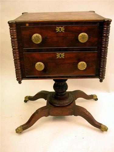 A SHERATON MAHOGANY TWO DRAWER WORK TABLE;