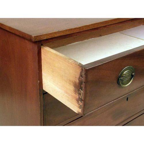 A SHERATON-STYLE CHEST OF DRAWERS<BR><BR>locks removed. 37" h. x 41 1/4" l x 20" d.