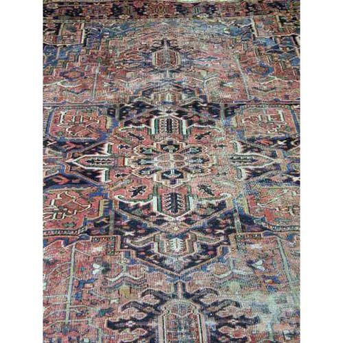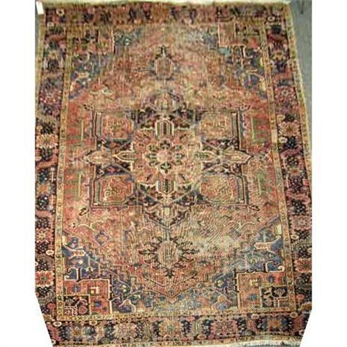 A SHIRAZ RUG<BR><BR>Possibly Kashkay, wear and losses to center of rug, 12`6"l x 8`10"w