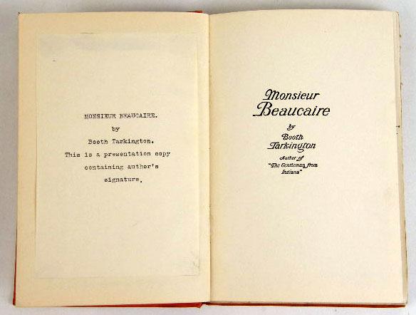 A SIGNED PRESENTATION COPY OF "MONSIEUR BEAUCAIRE", BY BOOTH TARKINGTON