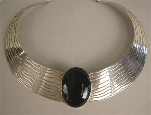 A SIGNED STERLING SILVER WITH CENTER OVAL ONYX COLLAR;