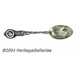 <B>A SILVER AND ENAMEL COLLEGIATE SOUVENIR SPOON</B></I><BR>Mark of Shepard, Melrose Highlands, Massachusetts, c.1900<BR><BR>Multi-colored enameled handle features the seal of Cornell University, bowl depicts the Library Tower, caption "Library Tower Cornell University, Ithaca, N.Y.", <I>marked reverse of handle</B></I><BR>5.75in. long <BR><BR><B>Important notice:</B> Heritage usually auctions material at the rate of 200-250 lots per hour. On some occasions eBay Live bid software or the Internet may not be able to keep up with the pace of the auction. We recommend placing a realistic absentee bid now as insurance to avoid disappointment. Occasionally the auctioneer may eliminate or reject an eBay Live bid, and the auctioneer may also reopen a lot after the close of the eBay live bidding (usually because we missed an audience bid), and may reject your bid even if it shows you as the winning bidder. By bidding via eBay Live, you agree that Heritage may award the lot to another bidder at its sole discretion under the circumstances described above or any other reasonable circumstances. Since eBay bids are not shown to us until we open the lot on the floor, we treat those bids just like floor bids. In most cases the floor responds before the eBay bid is presented to us, due to Internet lag time, so for consistency we have made it a policy that floor bids are always considered first over tie eBay live bids. Also please note that all Heritage lots purchased through eBay Live carry a 25% Buyer's Premium. Please make sure you read the Terms and Conditions before you bid. <BR><BR><B>IMPORTANT ANNOUNCEMENT ABOUT RESERVES:</B> Heritage now divulges all reserves on its web site 7 days before every auction. If you want to know whether the reserve on this lot has been met, and if not, what the reserve amount is, please visit this lot page on the HeritageCoin.com web site, or email: bid@HeritageGalleries.com </span></font>