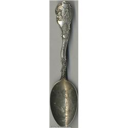 <B>A SILVER GOLF SOUVENIR SPOON</B></I><BR>Mark of Shepard, Melrose Highlands, Massachusetts, c.1900<BR><BR>Bowl features a woman playing golf, bright-cut caption "PINEHURST", <I>marked reverse of handle</B></I><BR>5.5in. long <BR><BR><B>Important notice:</B> Heritage usually auctions material at the rate of 200-250 lots per hour. On some occasions eBay Live bid software or the Internet may not be able to keep up with the pace of the auction. We recommend placing a realistic absentee bid now as insurance to avoid disappointment. Occasionally the auctioneer may eliminate or reject an eBay Live bid, and the auctioneer may also reopen a lot after the close of the eBay live bidding (usually because we missed an audience bid), and may reject your bid even if it shows you as the winning bidder. By bidding via eBay Live, you agree that Heritage may award the lot to another bidder at its sole discretion under the circumstances described above or any other reasonable circumstances. Since eBay bids are not shown to us until we open the lot on the floor, we treat those bids just like floor bids. In most cases the floor responds before the eBay bid is presented to us, due to Internet lag time, so for consistency we have made it a policy that floor bids are always considered first over tie eBay live bids. Also please note that all Heritage lots purchased through eBay Live carry a 25% Buyer's Premium. Please make sure you read the Terms and Conditions before you bid. <BR><BR><B>IMPORTANT ANNOUNCEMENT ABOUT RESERVES:</B> Heritage now divulges all reserves on its web site 7 days before every auction. If you want to know whether the reserve on this lot has been met, and if not, what the reserve amount is, please visit this lot page on the HeritageCoin.com web site, or email: bid@HeritageGalleries.com </span></font>