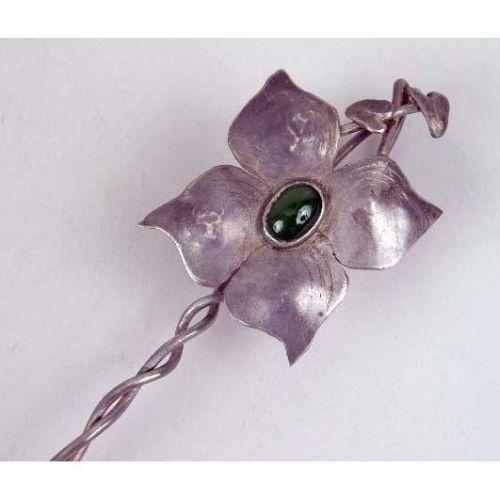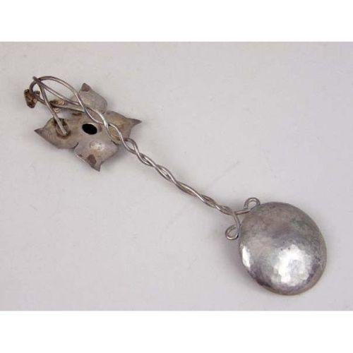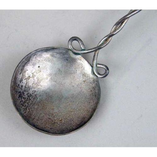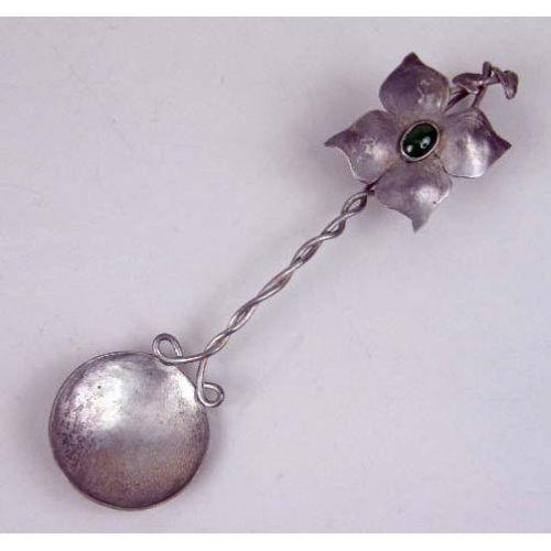A SILVER METAL AND HARDSTONE AESTHETIC MOVEMENT SERVING SPOON<BR><BR>With round bowl and twisted handle, 7-3/4"long