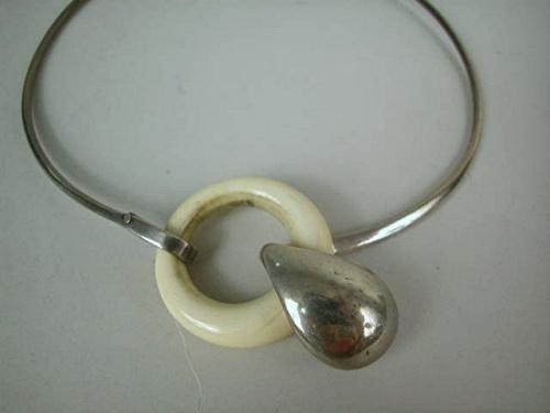 A SILVER-PLATED AND BONE CHOKER NECKLACE