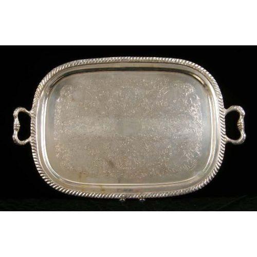 A SILVER PLATED DOUBLE HANDLED TRAYS<BR><BR>26"long over handles