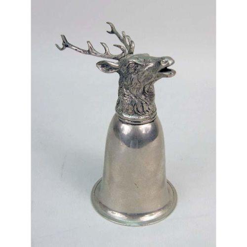 A SILVER PLATED STAG DECORATED STIRRUP CUP<BR><BR>8"h