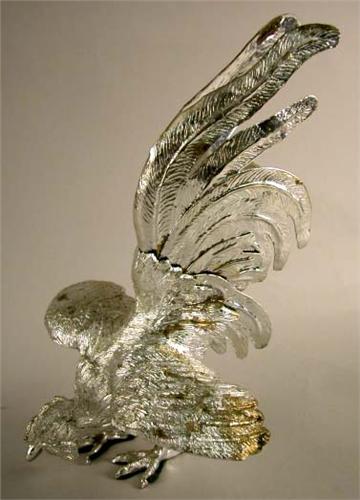 A SILVER PLATED TABLE ROOSTER; 10-3/4"h