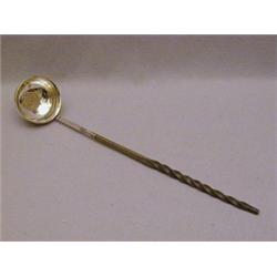 A SILVER PUNCH LADLE, whale bone handle inset in the bowl with a 1758 sixpence, contemporary engraved initials 'IHT', (old solder repairs) £50-80