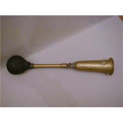 A SIMILAR KLAXON TO THE ABOVE, brass finish, the rubber squeezer perished, length 50cm 20-30