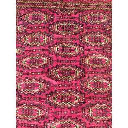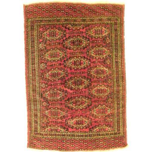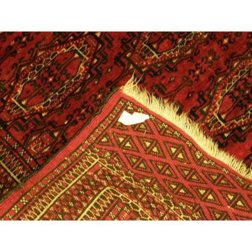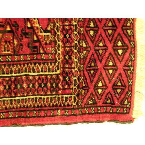A SMALL BOKHARA RUG<BR><BR>Worked in ivory, black, and burgundy, 5`l x 3-1/2`w