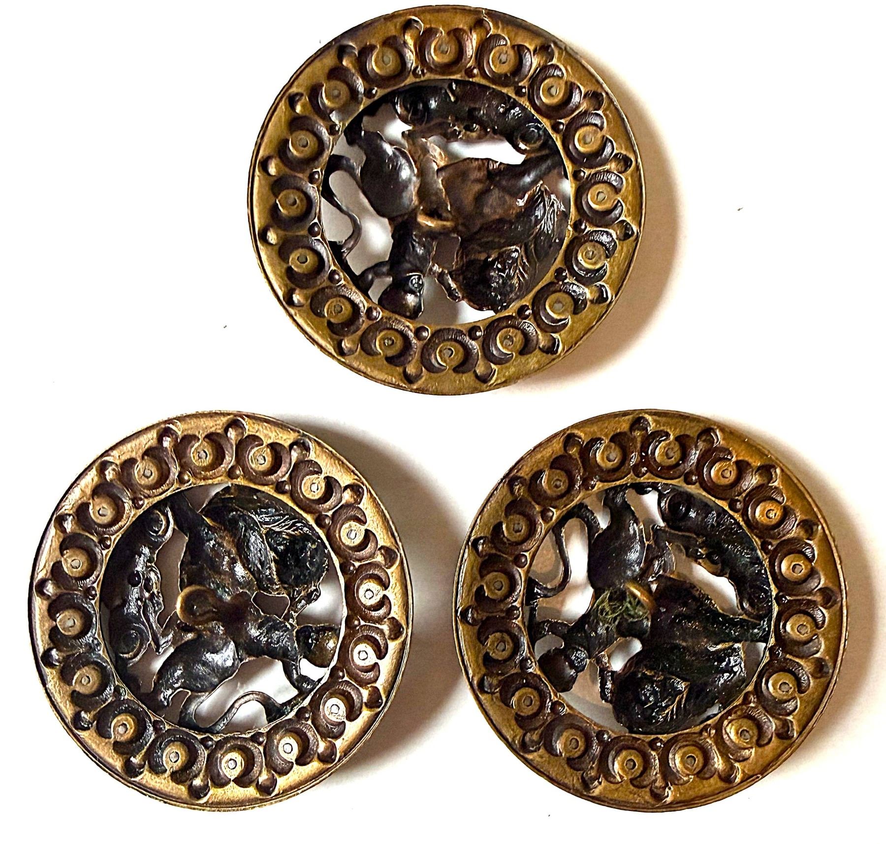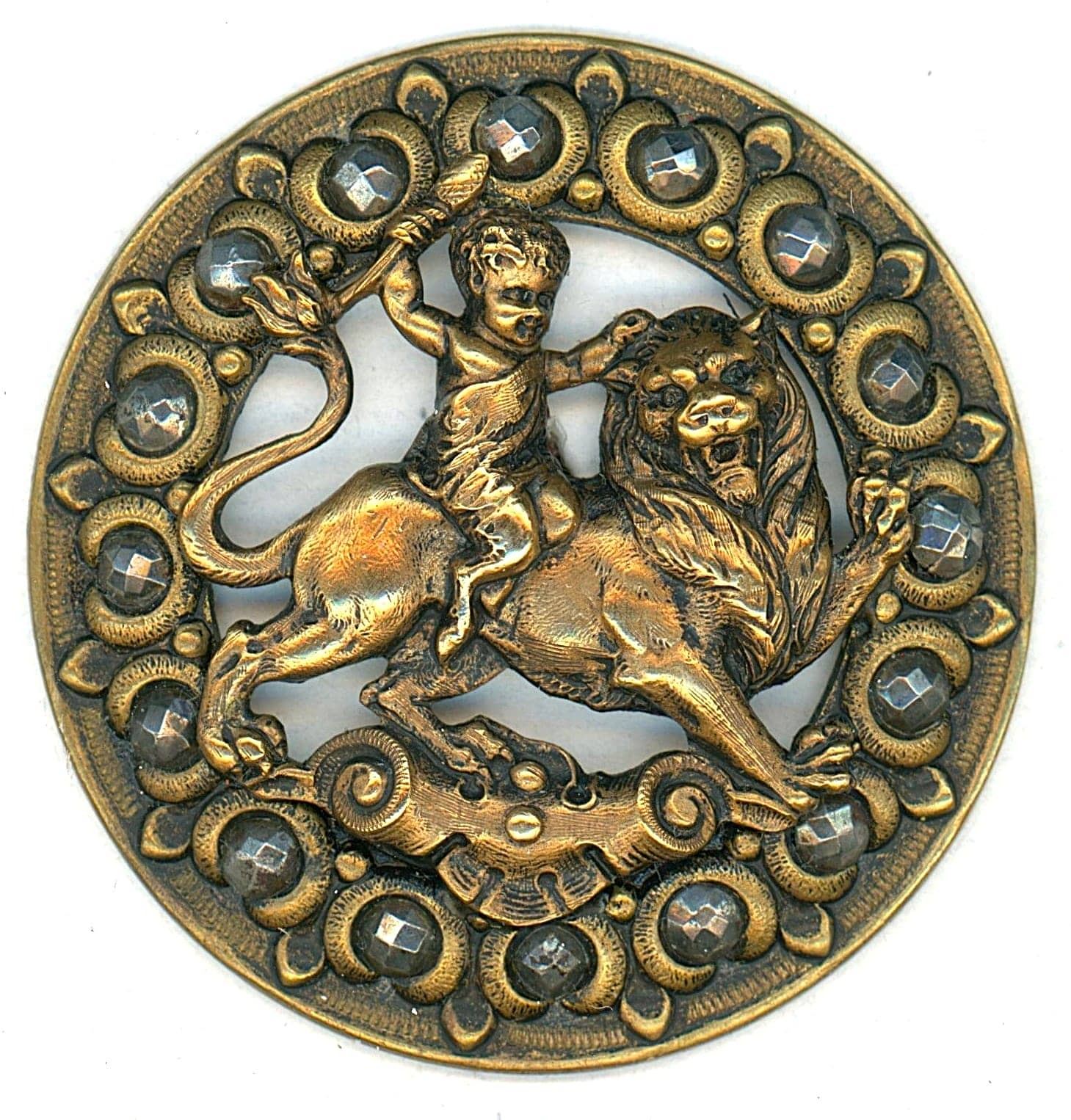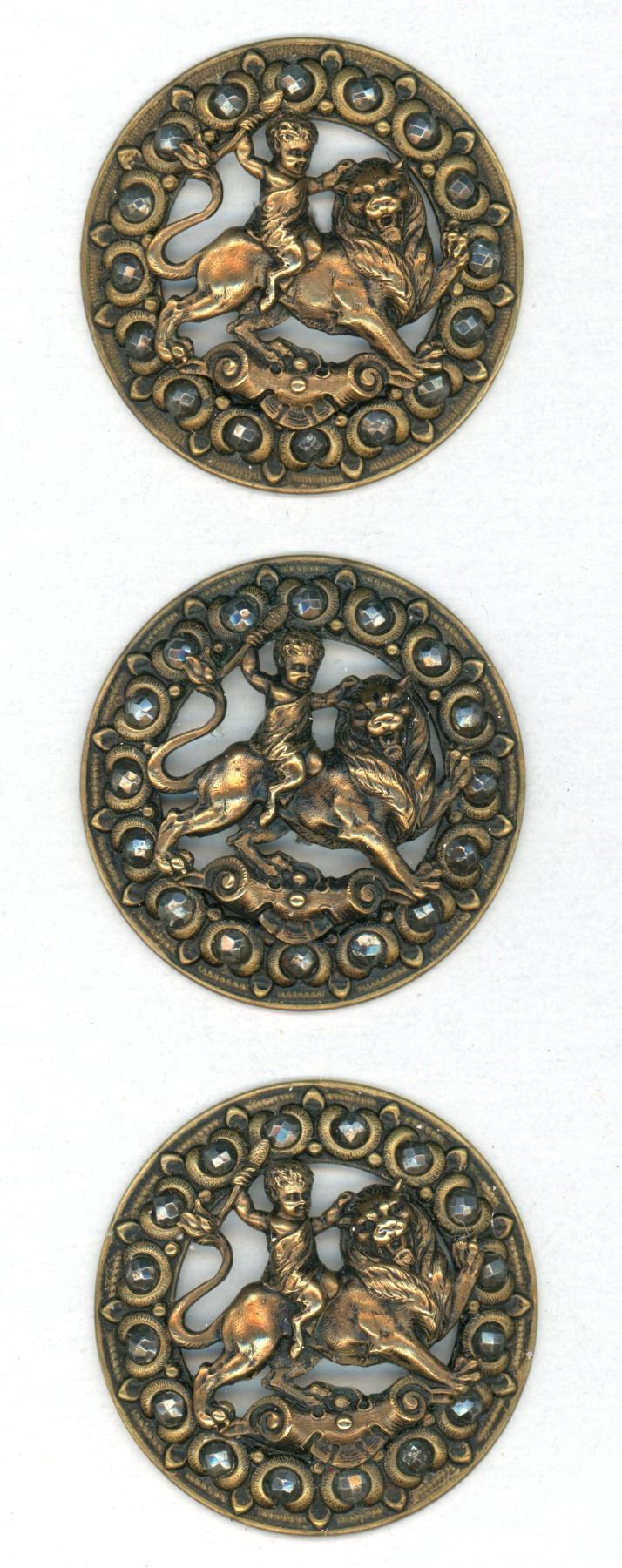3 Large 19th century detailed pierced examples. This small card boasts 3 buttons in great detail depicting a Cherub riding a lion and bordered with cut steels. These are really high quality detailed examples.