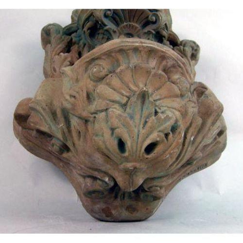 A SMALL CAST-STONE GARDEN ORNAMENT<BR><BR>ZLater drilled for a fountain. 19" h x 13 1/2" w x 9" d.