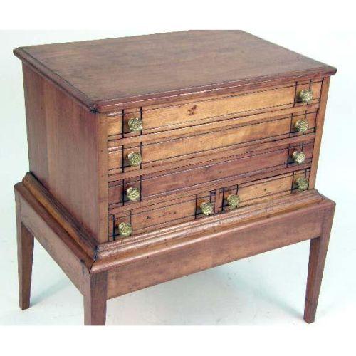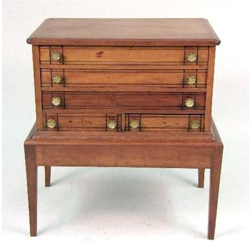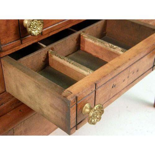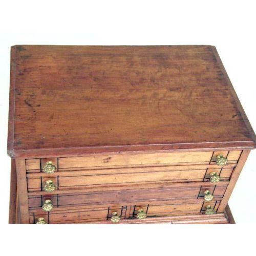 A SMALL CHEST OF DRAWERS<BR><BR>Later adapted for use as an early Mazda lightbulb and automobile fuse display cabinet, 28"h x 27"w x 20"d
