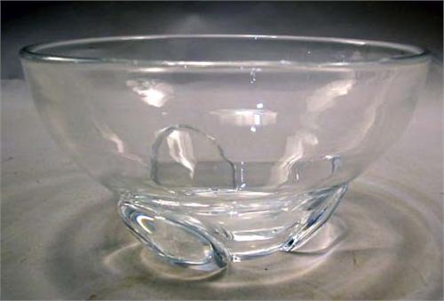 A SMALL CRYSTAL BOWL WITH DISK FEET BY STUEBEN 6 3/4"D
