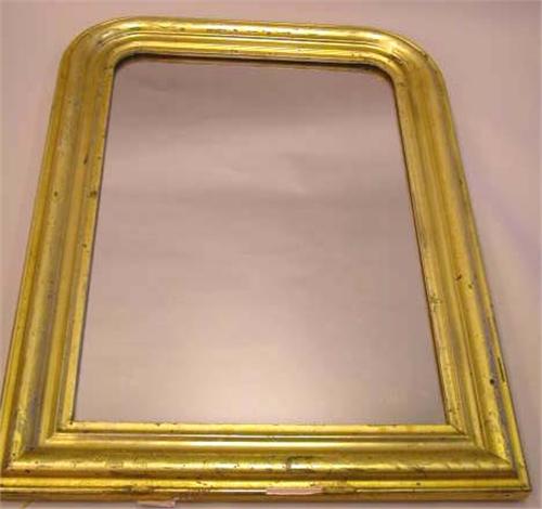 A SMALL EMPIRE GILTWOOD MIRROR; With arched corners and incised leaf decoration 35"h x 23 1/2"w