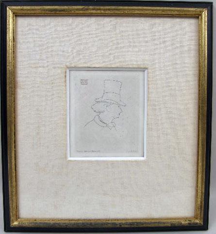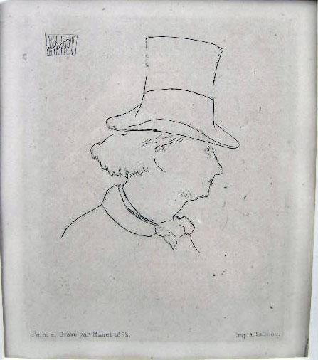A SMALL FRAMED ETCHING BY EDOUARD MANET, "BAUDELAIRE DE PROFILE EN CHAPEAU"