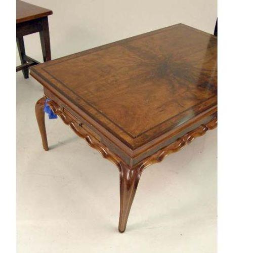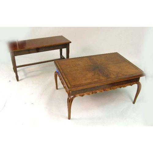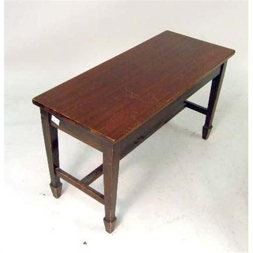 A SMALL SPADE-FOOT TABLE<BR><BR>gouges and scratches to surface finish. Together with another table, one leg off but present. The first 20"h x 36"w x 15"d. 2 pieces.