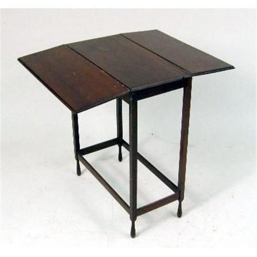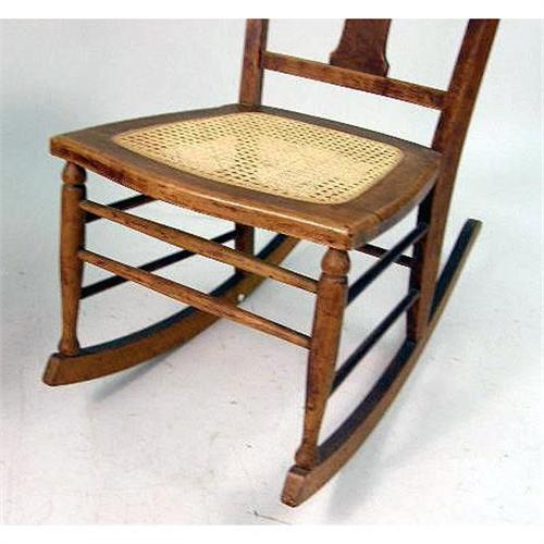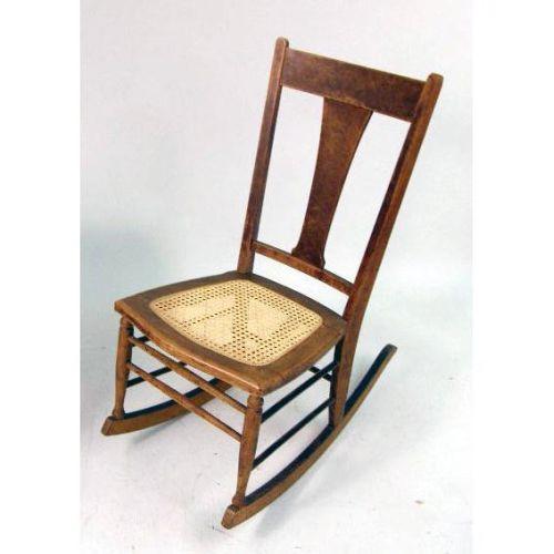A SMALL THREE-LEAF TABLE<BR><BR>together with a cane seat oak rocking chair. Table: 25-1/2"h x 25"w x 20"d, top detached from base.