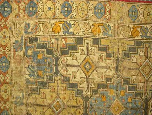 A SMALL TRIBAL MAT; very worn, 5'6"l x 36"w