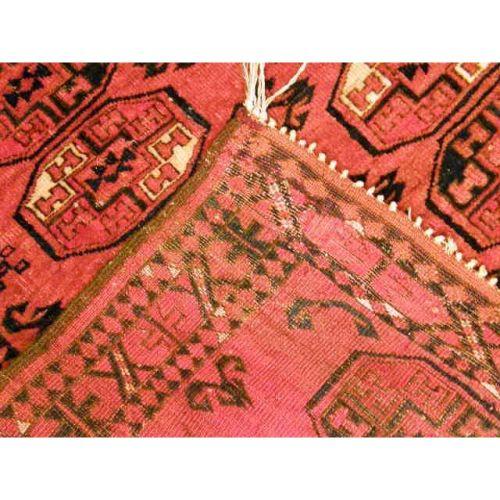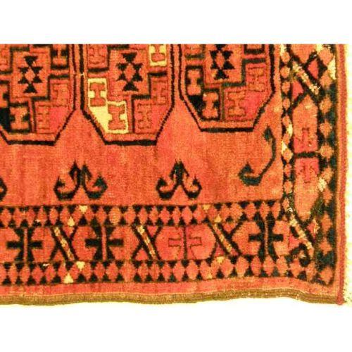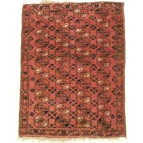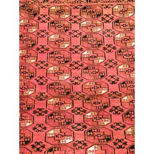 A SMALL TURCOMAN RUG<BR><BR>With repeating geometric motif, 4`6"l x 44"w