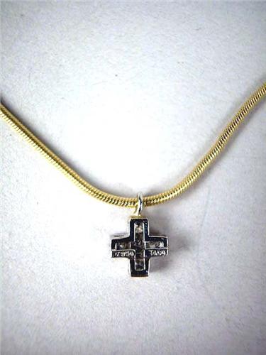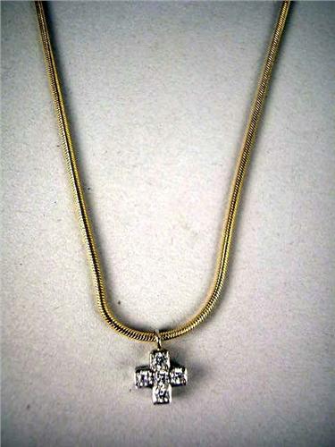A SNAKE CHAIN WITH A SMALL PLATINUM CROSS Stamped "T&Co. PT900", the cross is set with five full cut diamonds, total estimated weight apx. 0.15 carat, clarity VVS2, color F-E, chain: 16"l