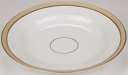 An excessively rare soup plate used in the Lincoln White House in 1865 and present there at the time of Lincoln's assassination. This plate is from the Lincolns' informal, regularly-used household service, thus saw much more use than the formal pattern used for state dinners. The plate measures 9 3/8" wide, 1 1/2" deep, and bears a buff-colored gilt-edged band at its edge, as well as a circular gilt band near its center. It is in excellent condition and ideal for the collector of Lincolniana. It appears that this same service may have been used in the White House during the administrations of Andrew Johnson and Ulysses S. Grant as well.