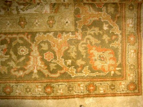 A SOUTHEAST INDIAN WOOL CARPET; With an ivory field and overall floral and serrated leaf motif 19'5"l x 13'7"w