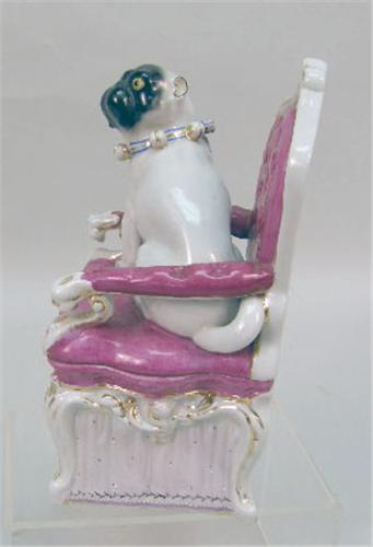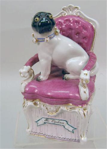 In the form of a pug dog seated on a chair, and inscribed "The Orphan". Kentshire Galleries, New York, NY