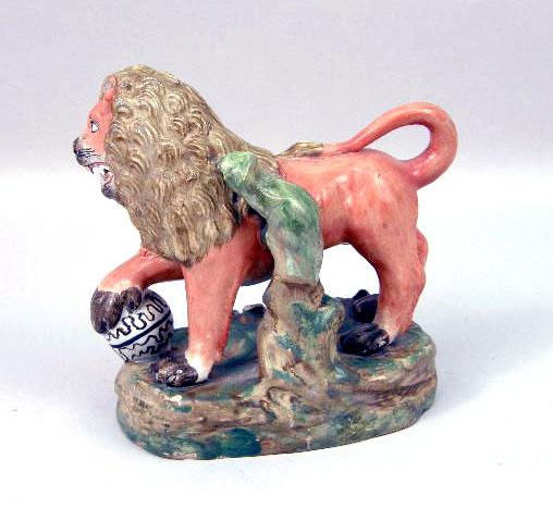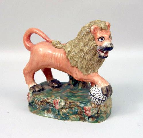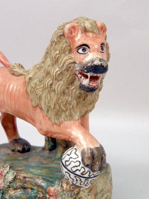 A STAFFORDSHIRE PORCELAIN LION FIGURE