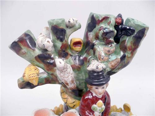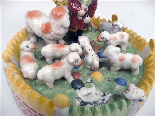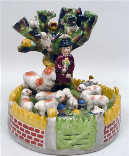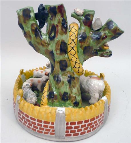 Probably a fairing. The figural group depicting the Tree of Life with barn animals. 8"h x 9"dia. Missing one animal.