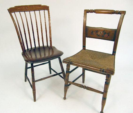 A STENCIL-DECORATED RUSH SEAT FANCY CHAIR