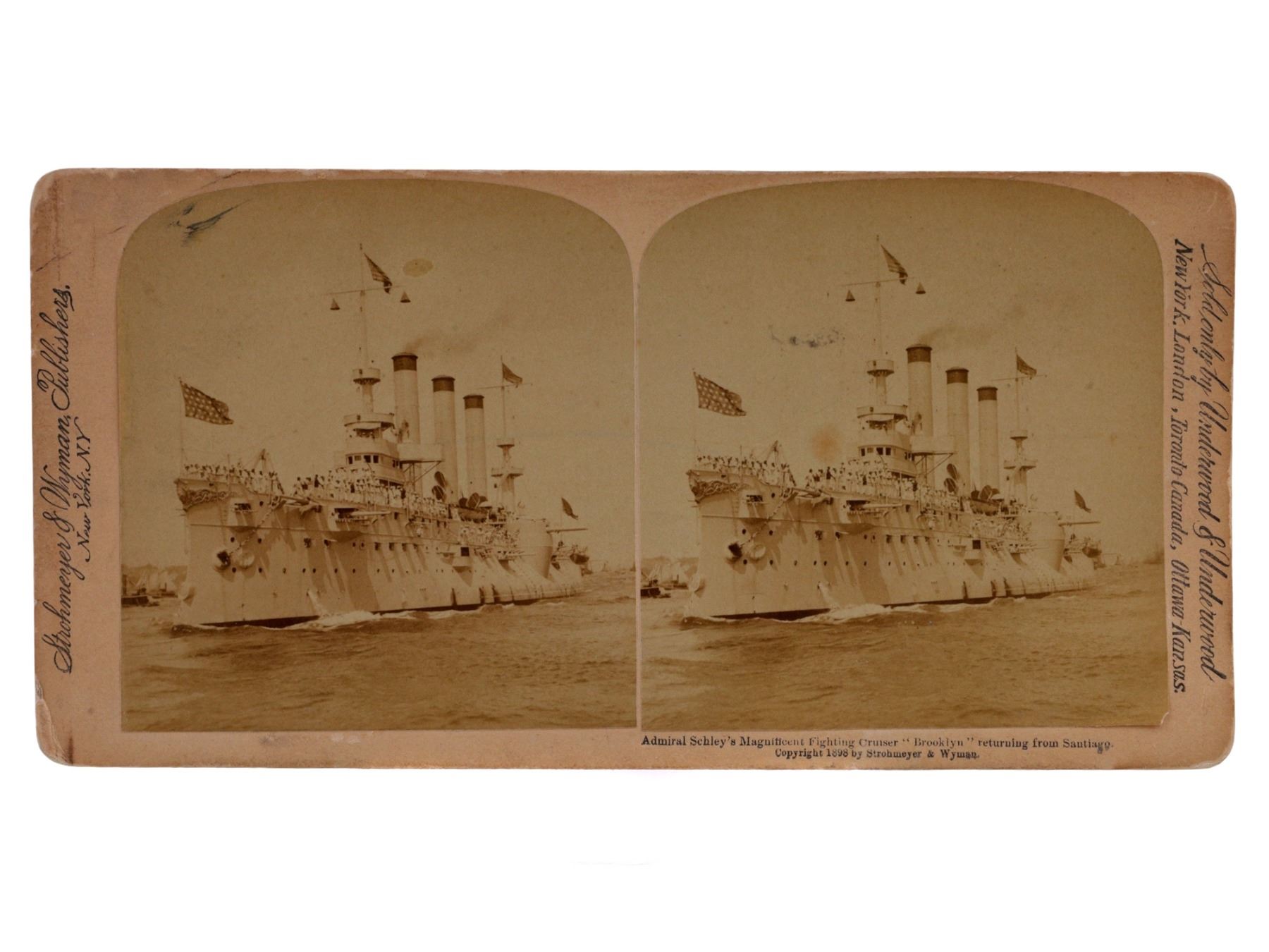 A STEREOGRAPH OF COMMODORE SCHLEY'S FLAGSHIP 'USS BROOKLYN', CA. 1898