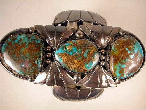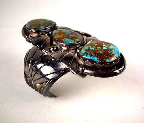 A STERLING SILVER AND TURQUOISE BRACELET A STERLING SILVER AND TURQUOISE BRACELET