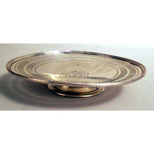 A STERLING SILVER FOOTED CIRCULAR DISH<BR><BR>7"dia., weight apx. 5 T.O.