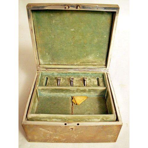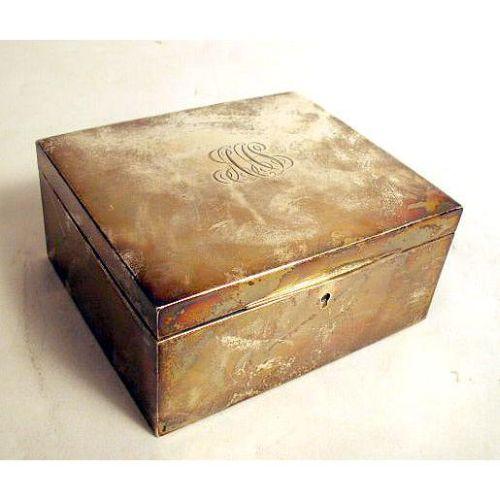 A STERLING SILVER HINGED-LID JEWELRY BOX<BR><BR>with fitted velvet interior. 5-1/2"l