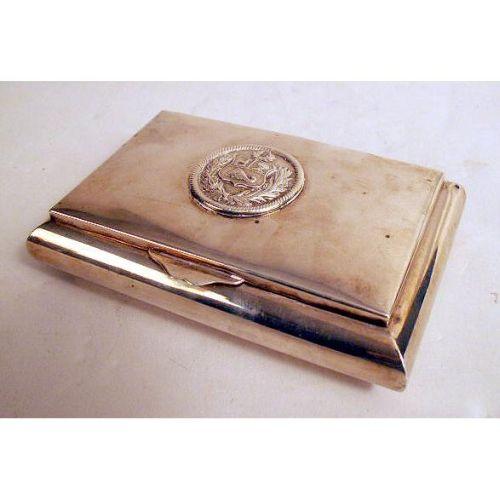 A STERLING SILVER HINGED-LID WOOD-LINED BOX<BR><BR>3-3/4"l