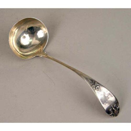A STERLING SILVER IVY PATTERN SOUP LADLE<BR><BR>Monogrammed, 10-1/2"long, weight apx. 4 T.O.