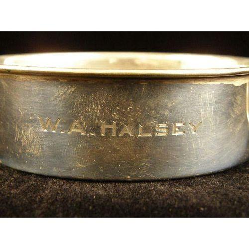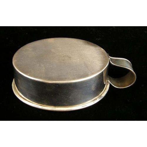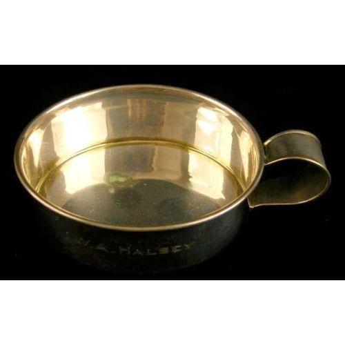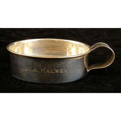 A STERLING SILVER OVAL WINE TASTER<BR><BR>Engraved "WA Halsey", 4-1/4"long over loop handle