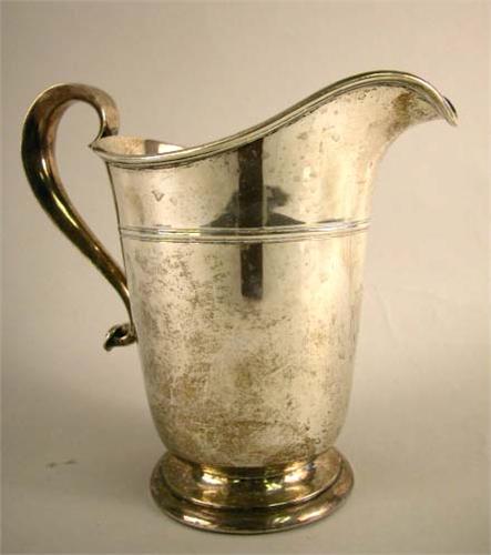 A STERLING SILVER WATER HELMET-FORM WATER PITCHER; Retailed by Black, Starr & Frost, #A9491, 3-1/4pts., scroll handle on circular foot rim, dented, cipher monogram, 8-1/4"h, apx. 28 T.O.