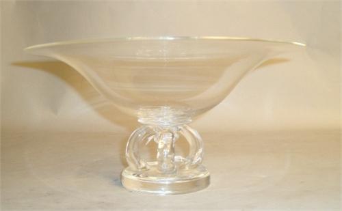 A STEUBEN COLORLESS CRYSTAL FOOTED BOWL, 5"h x 10"dia.