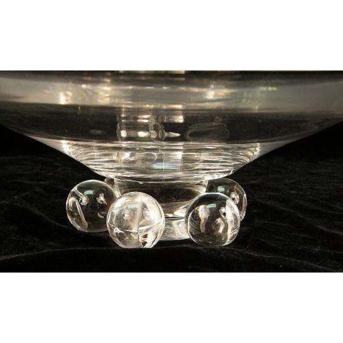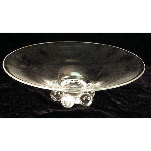 A STEUBEN COLORLESS GLASS FOOTED BOWL<BR><BR>Wear, 4"h x 12 1/2"dia.
